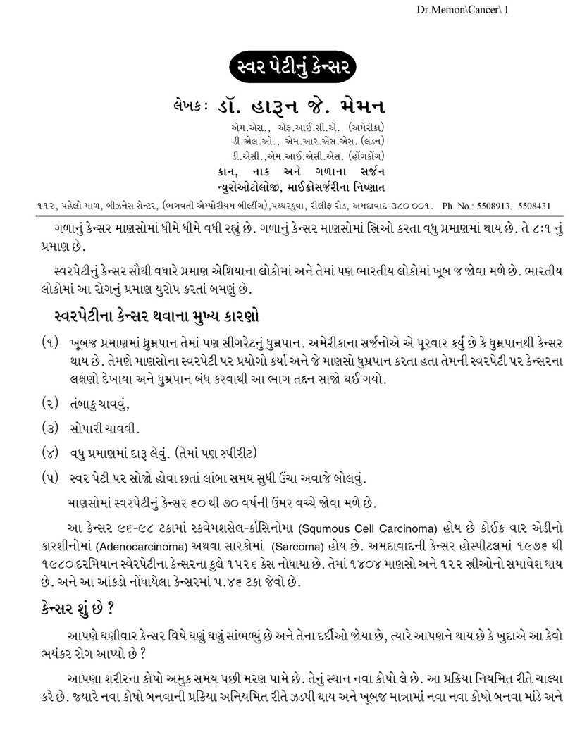 Memon ENT Hospital, Ahmedabad, India Breath Well, Smile Well, Hear Well ગળાનું કેન્સર ❮ ❯ 1 / 7 1 2 / 7 2 3 / 7 3 4 / 7 4 5 / 7 5 6 / 7 6 7 / 7 7
